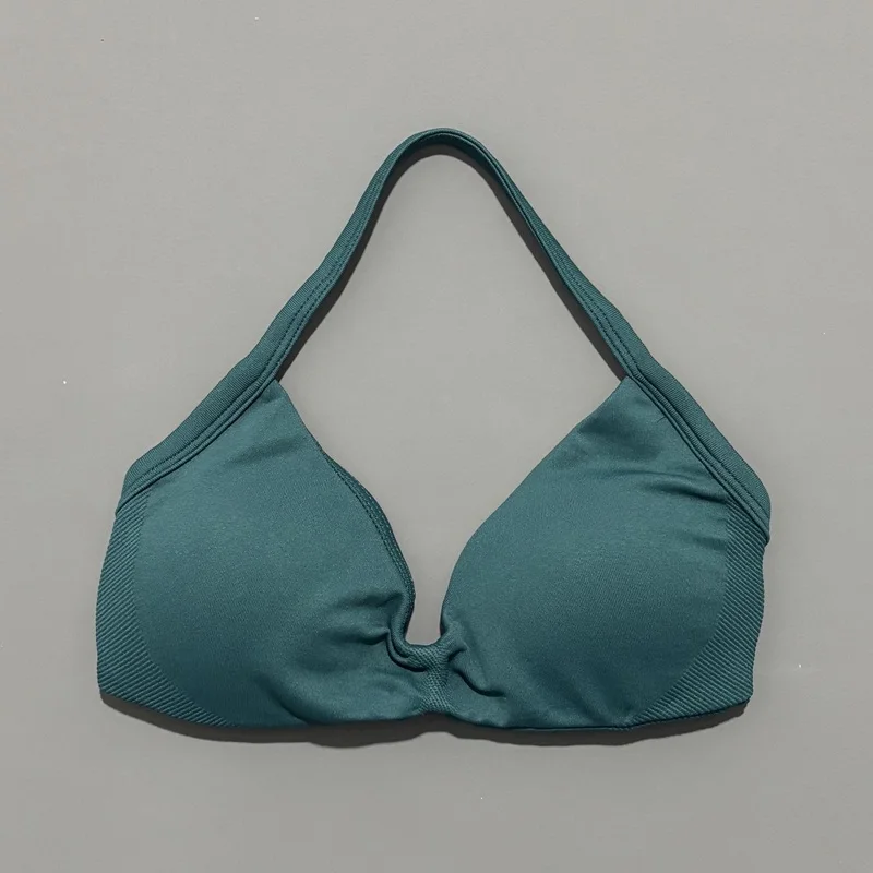 HISTELLO Impact Strappy Bra Gym Top Women High Support Thin Strap Halter Sports Seamless Bras Scrunch Push-up Workout Yoga Tanks