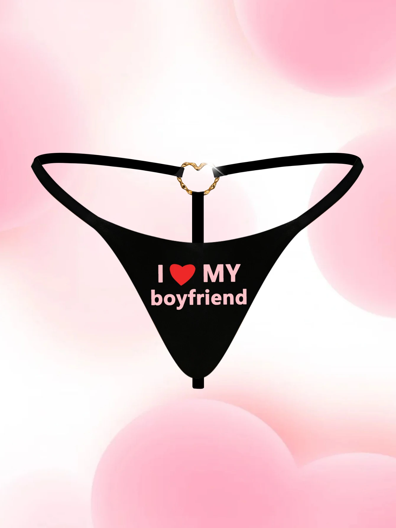 Varsbaby Cheeky Letter G-string Underwear with I love my boy friend Print Panties Playful Thong Seamless T-back Bikini