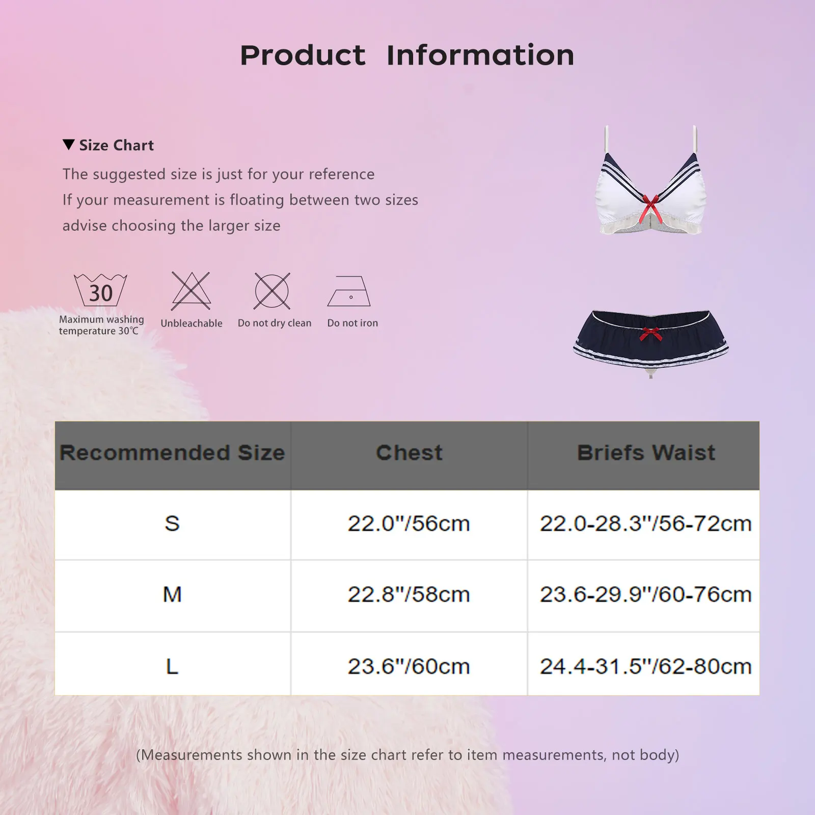 (Measurements shown in the size chart refer to item measurements, not body)