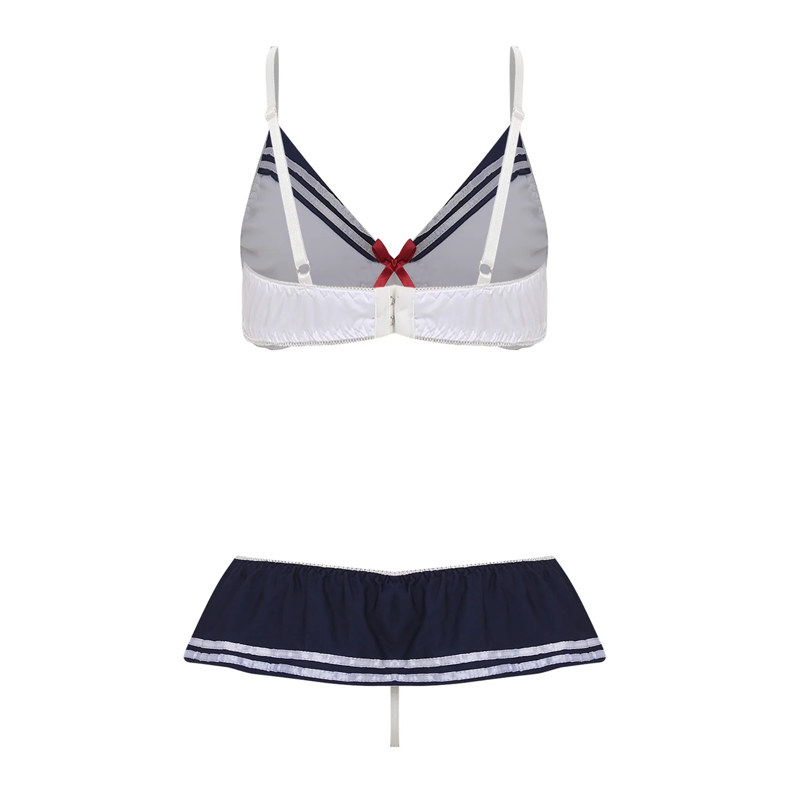 Women Two Pieces Sailor Bikini Swimsuit Swimwear Set Adjustable Shoulder Straps Bra Top with Elastic Waistband Skirted G-string
